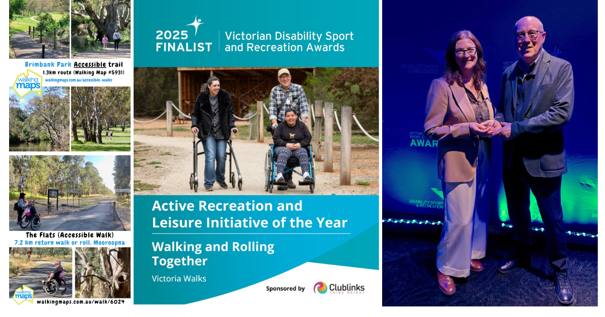 We're honoured to have been recognised at last week's Victorian Disability Sport & Recreation Awards at the MCG, where our 'Walking & Rolling Together' project was named Active Recreation & Leisure Initiative of the Year.